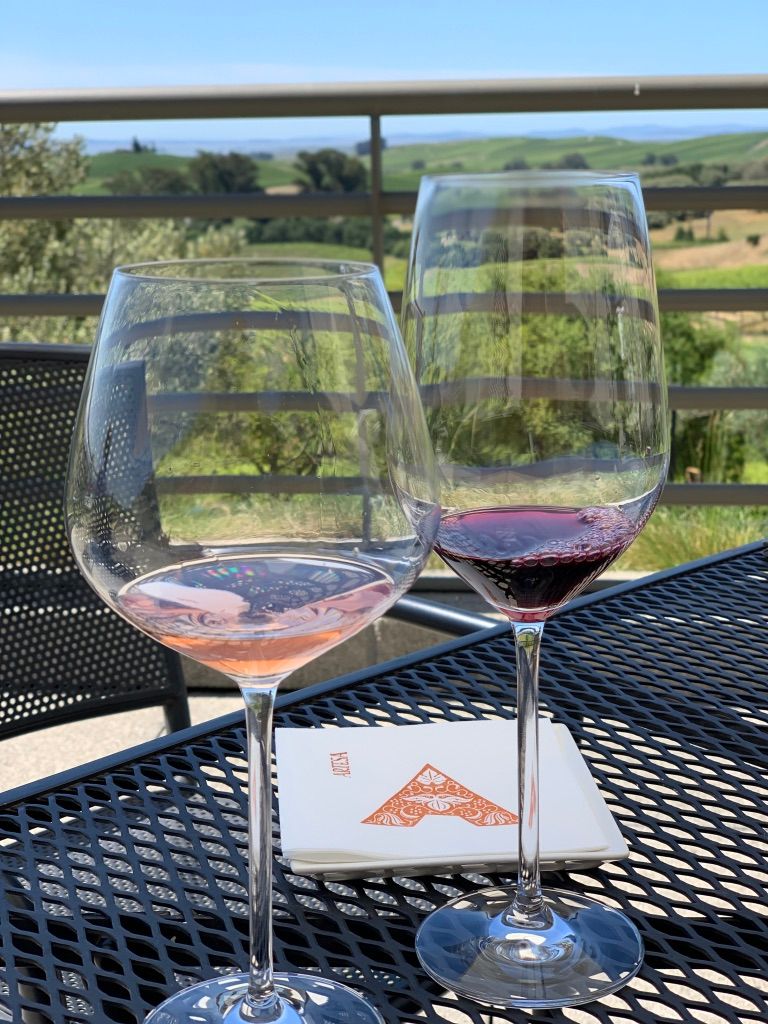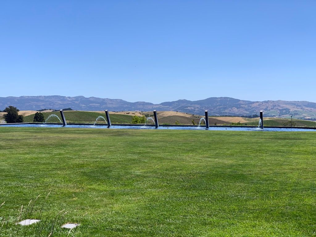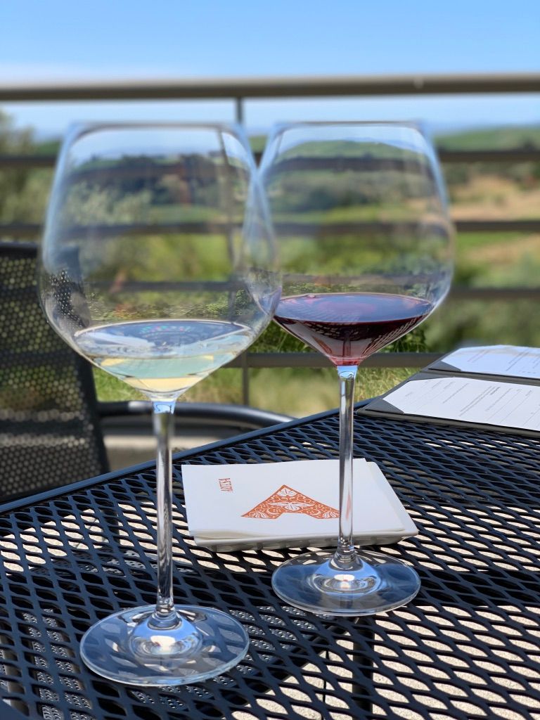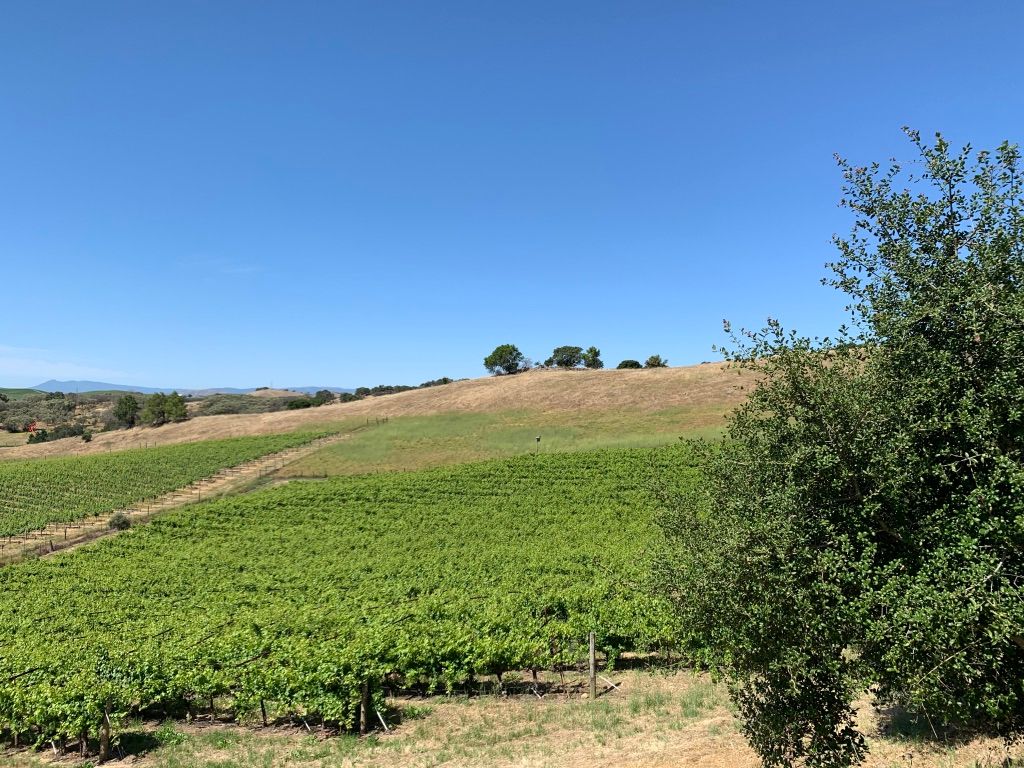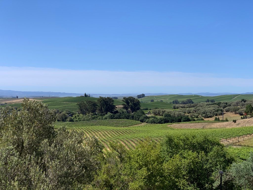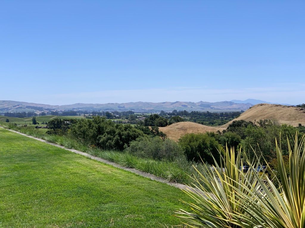 We walk into the tasting room, see the hostess who takes us to our table, outside on the terrace! I love tasting wine outside. Mr. Wine Cutie and I chose different tastings this time, the Aromatic Tasting and the Single Vineyard Tasting. As we’re sitting, looking at the views, I again think I’m seeing San Francisco in the distance. I ask this time, and I was right! I am seeing the Salesforce Tower in San Francisco. I was so excited I posted a story on my Instagram.