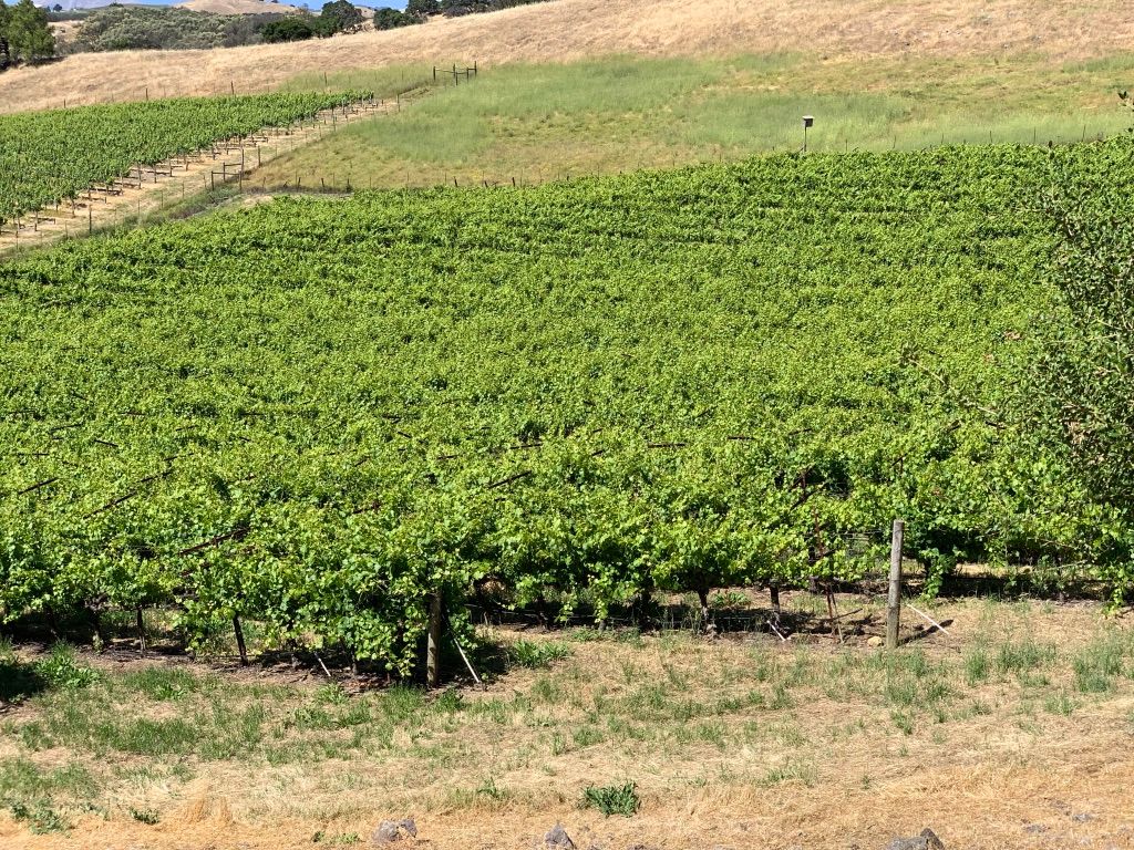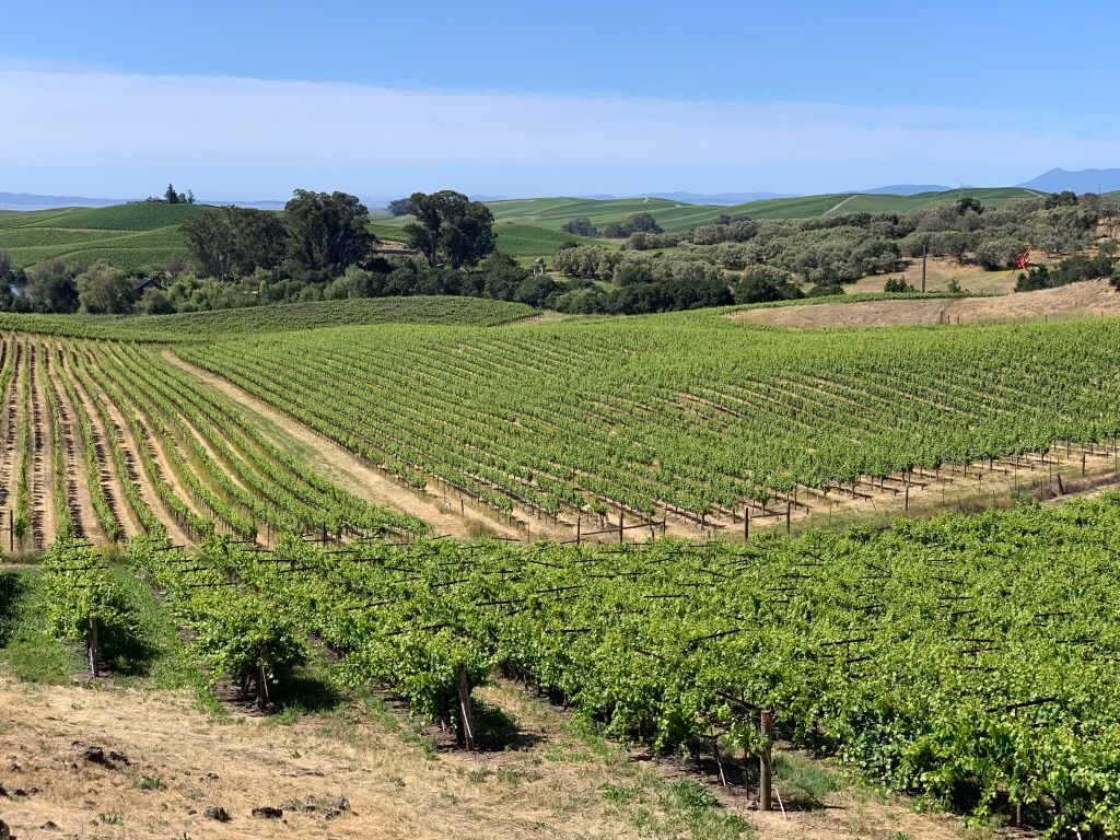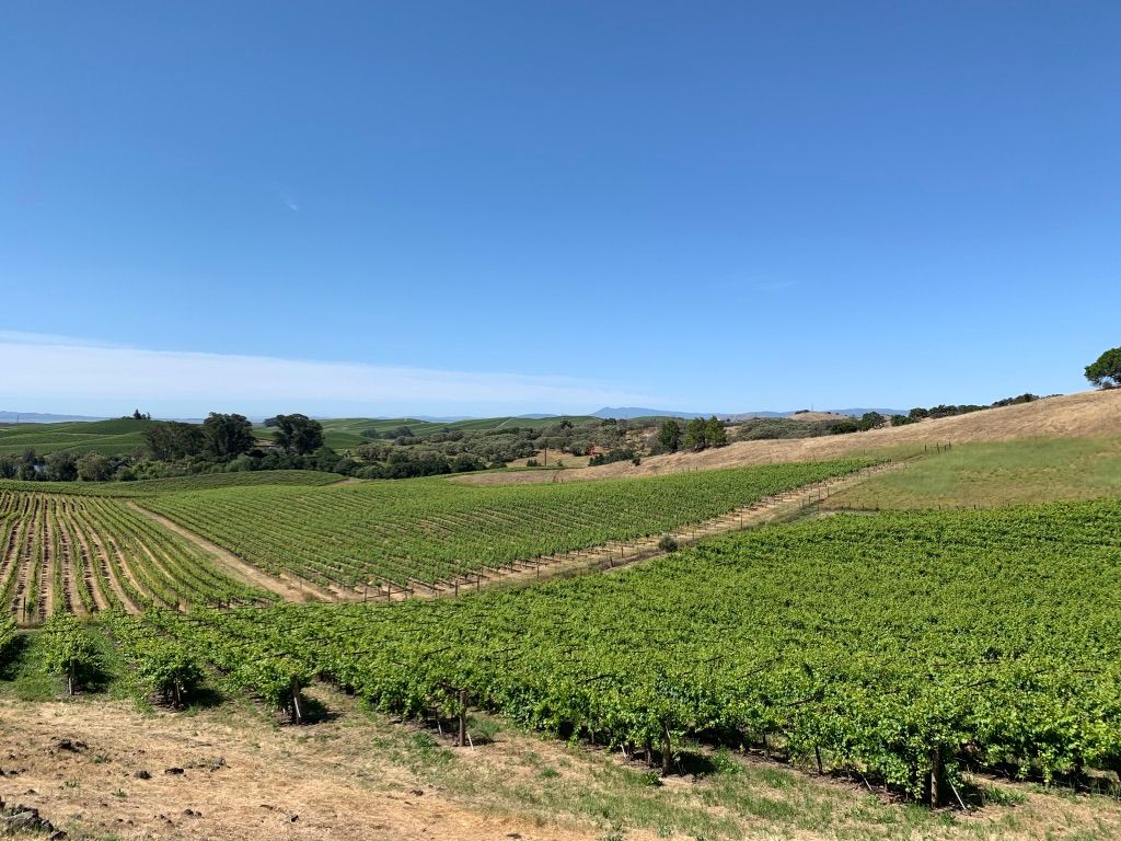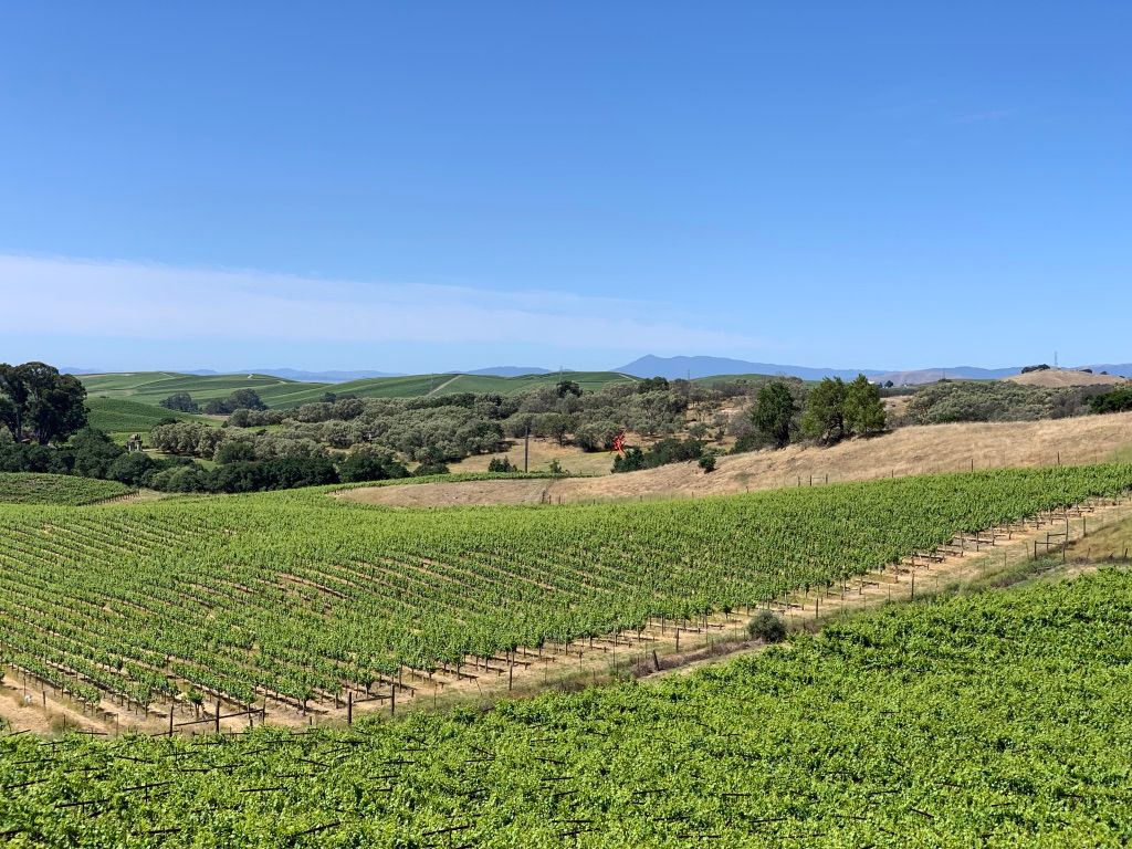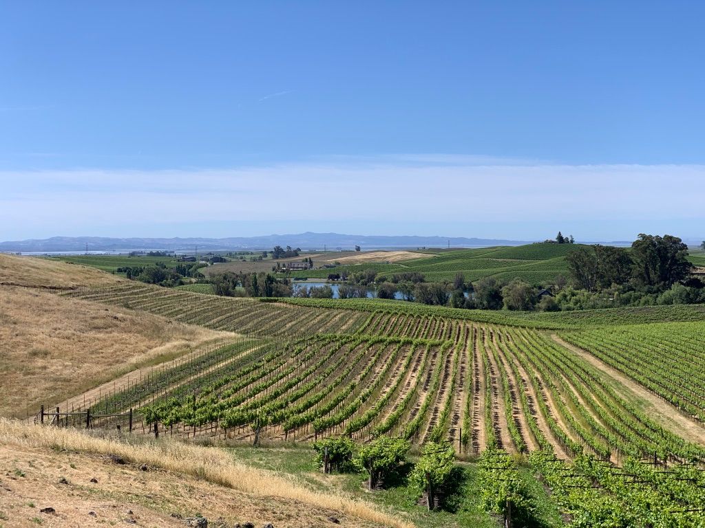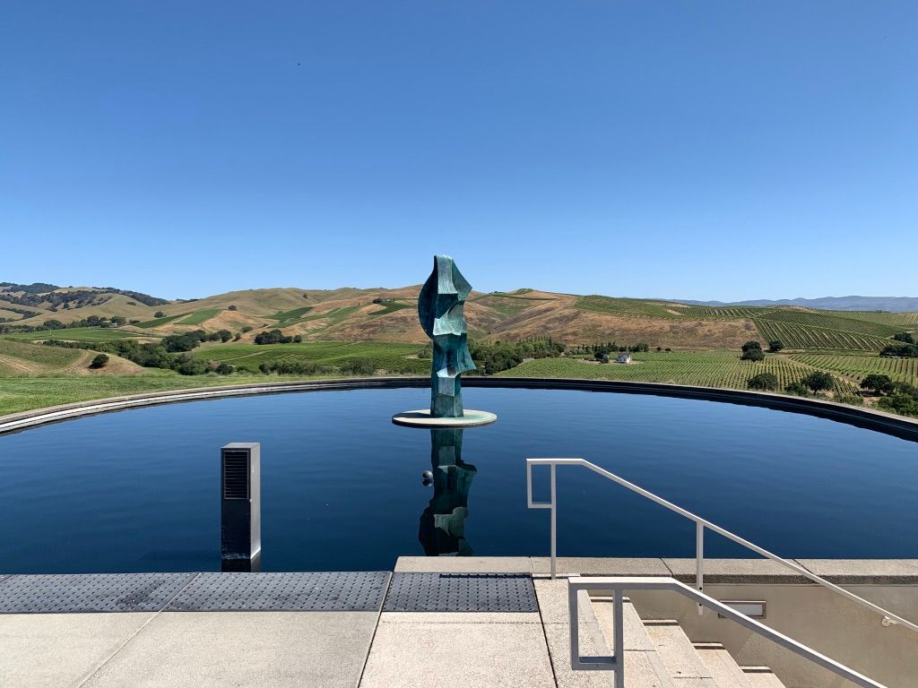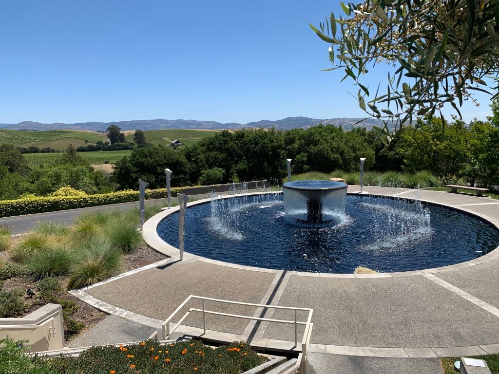 We walk into the tasting room, see the hostess who takes us to our table, outside on the terrace! I love tasting wine outside. Mr. Wine Cutie and I chose different tastings this time, the Aromatic Tasting and the Single Vineyard Tasting. As we’re sitting, looking at the views, I again think I’m seeing San Francisco in the distance. I ask this time, and I was right! I am seeing the Salesforce Tower in San Francisco. I was so excited I posted a story on my Instagram.