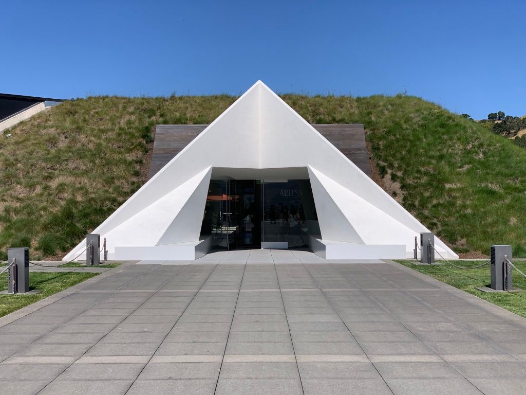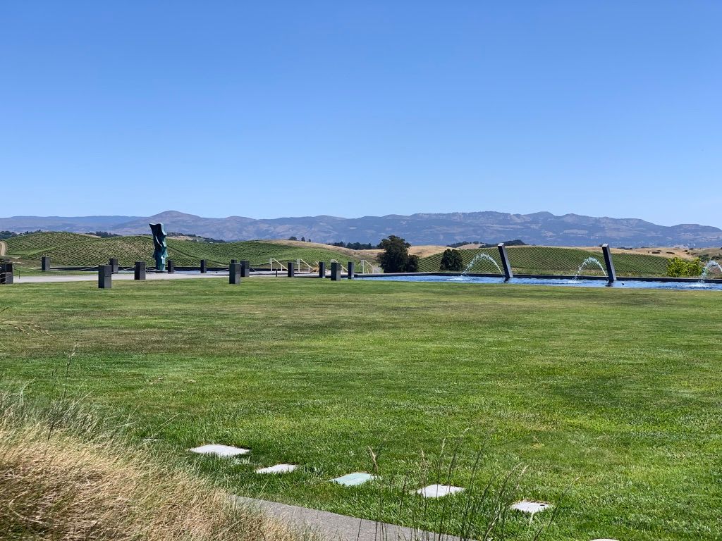 As we turned left onto Artesa’s property, we realize how crazy hazy it was when we were here in November. The sky is so blue and the vineyards so vibrant and beautiful. As we drive up, I turned to Mr. Wine Cutie and said, “Whoa! I thought it was beautiful the last time we were here, but this is BREATHTAKING!”