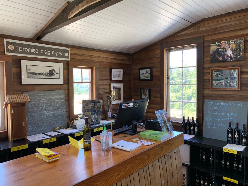 After introducing ourselves, we learn a little more about the tasting room and current owners, Dave and Anne Moulton, who bought the property in 1973. They worked on restoring Burrell School and in 1990, one hundred years to the day, they rededicated the flagpole. The tasting room stands on the former site of the teachers’ carriage house. Again, my history heart is in love with this place.