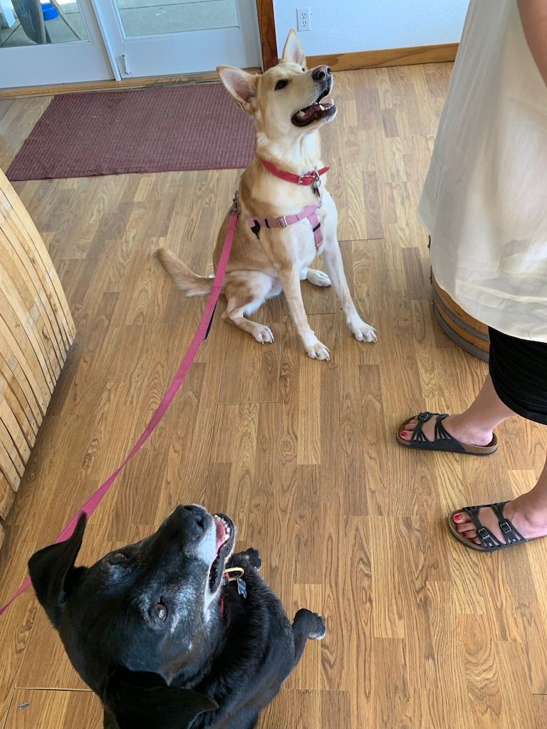 Walking into their tasting room with our doggo, Jedi, we’re greeted by a handsome black labrador named Bentley. Bentley loves treats, just an FYI :P.