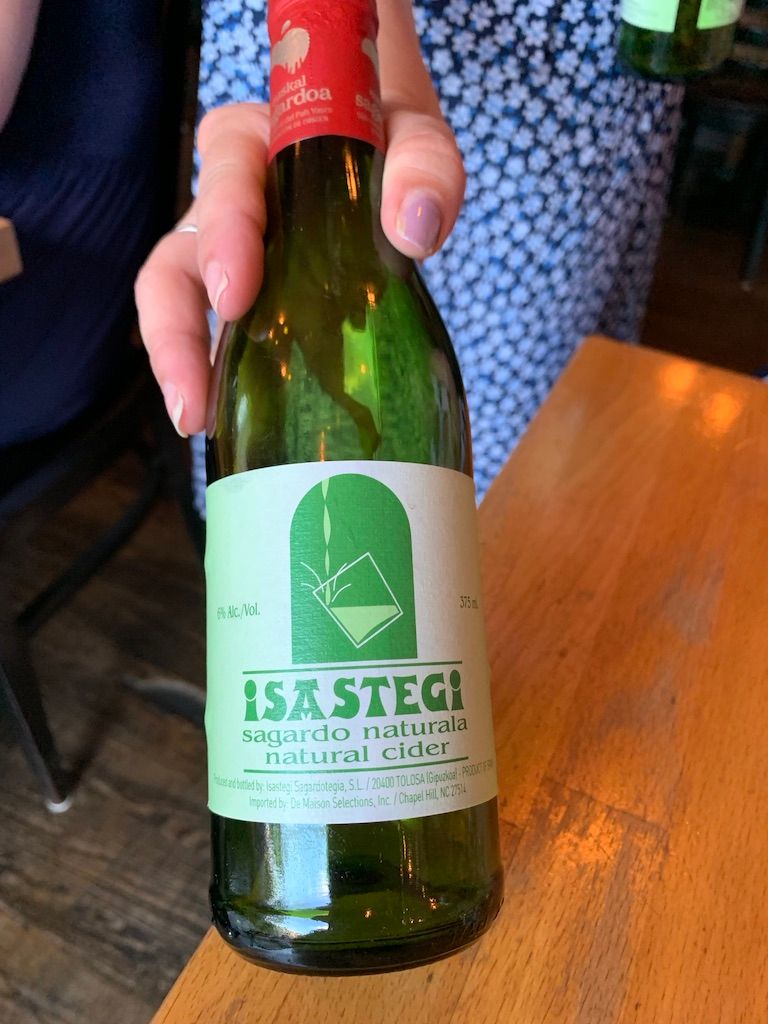 I’m not a cider fan, as I don’t care for the sweetness. However, this cider is the most interesting cider I’ve ever had. It was funky and acidic, not sweet at all. The cider was bottled with a cork instead of screw top, which I found so cool. The somm explained that once you open the bottle, you should flip the cork over and insert it back into the bottle, enabling it to become an aerator. She added, make sure when pouring the cider, to start up high to get the full effect of aeration.