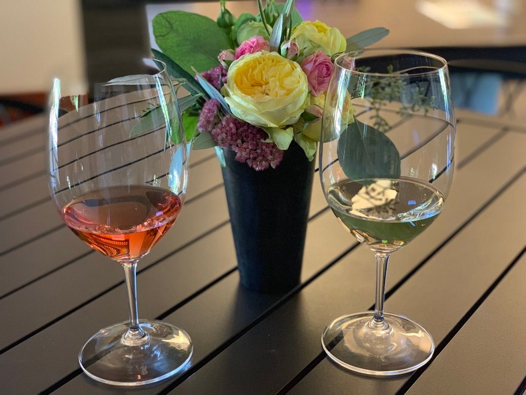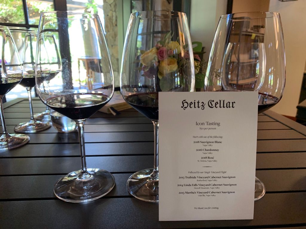 We’re asked if we’d like to start with chardonnay, sauvignon blanc or rosé. We’re having a rare, no-rosé-all-day, and we briefly consider keeping the trend going. However, the wine educator informs us that Heitz’s rosé is made from grignolino. We look at each other and know that we need to try that rosé. We try the sauvignon blanc as well. He says, go ahead and take a seat wherever we’d like.