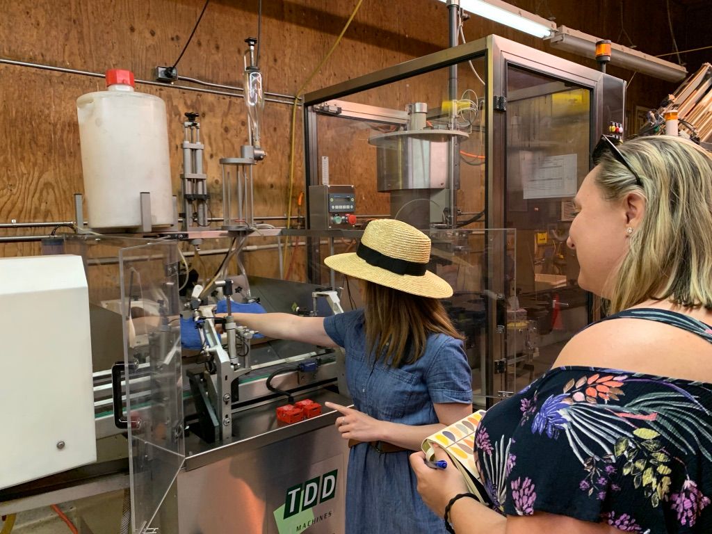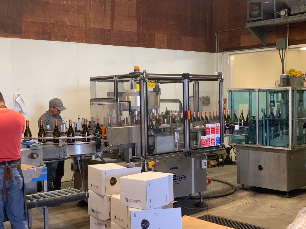 Of course, we’re in. We walked over to the bottling building and saw the bottling of a still wine, a two-clone chardonnay.