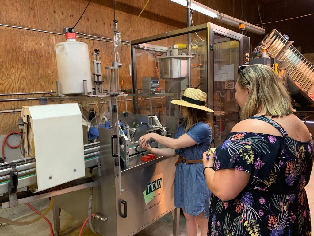 We walk back up the hill to the tasting bar to enjoy the next two wines, the 2015 Summer’s Cuvee and the 2013 Brut X. We are in the midst of tasting the Summer’s Cuvee when we’re told they are bottling wine and asked if we’d like to see.