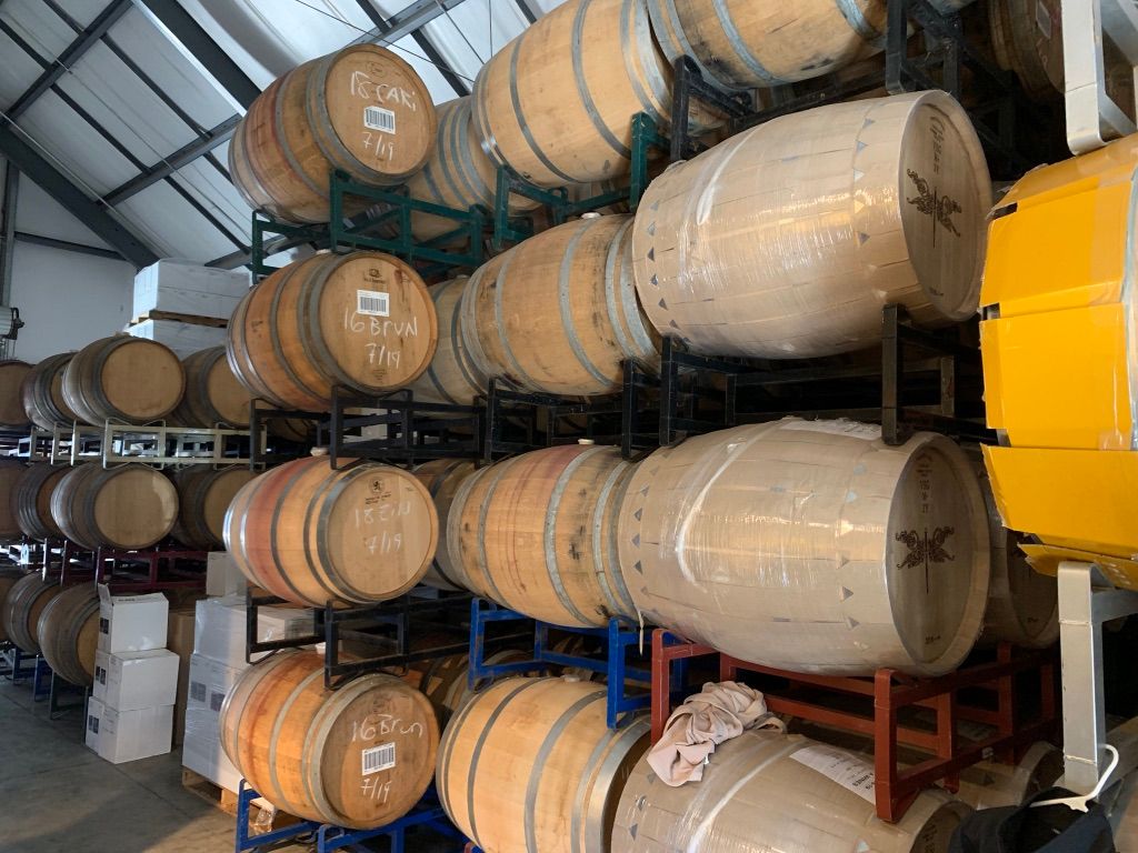 We began talking to Nolan, the assistant winemaker, who had just walked over to the tasting bar. He was so knowledgeable and fun to talk with. We noticed the stacks of barrels in the tasting room. He said that the ones stacked four high were all empty at the moment. He continued that if you walked down a little ways, the barrels stacked three high have wine in them. He explained that barreling occurs at different times throughout the year. He then said something so interesting… They just bottled the 2018 cabernet sauvignon.