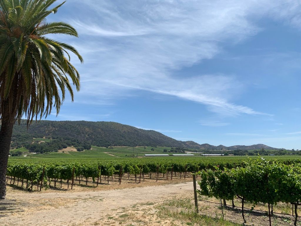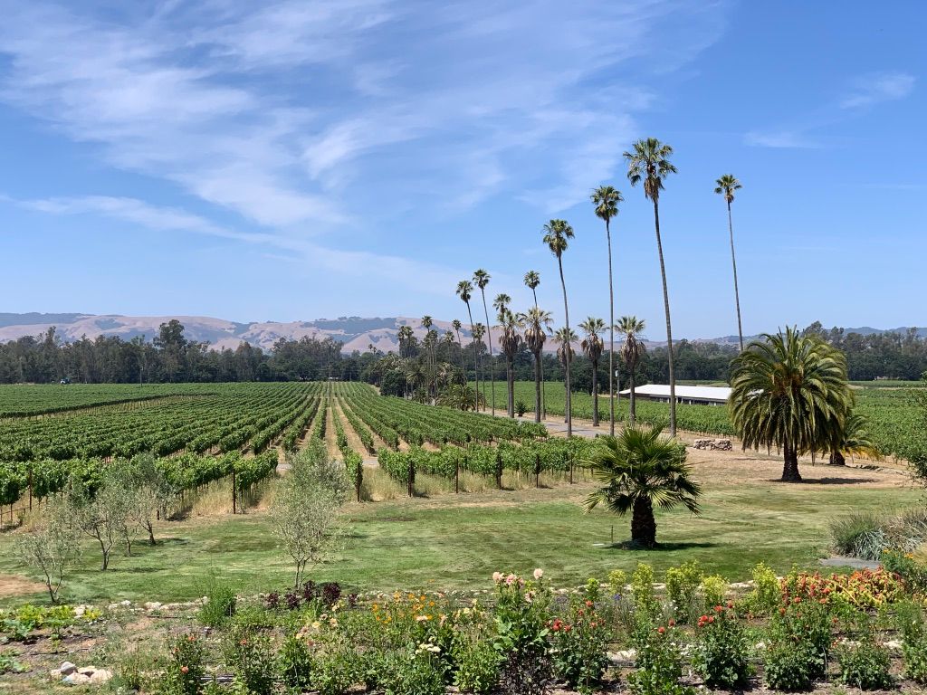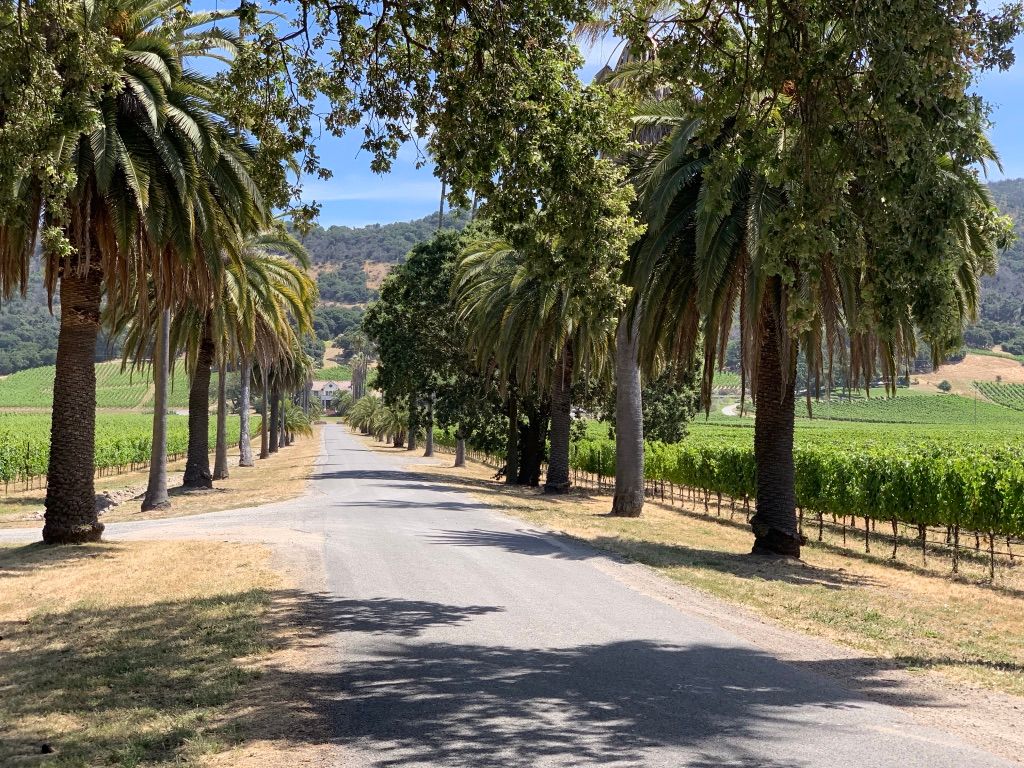 As we turn onto Scribe's long driveway, we know this is going to be a different kind of tasting. Palm trees line both sides of the driveway, and I almost feel like we're going back in time. The winery itself looks like an old Spanish home. I can't get over how beautiful it is.